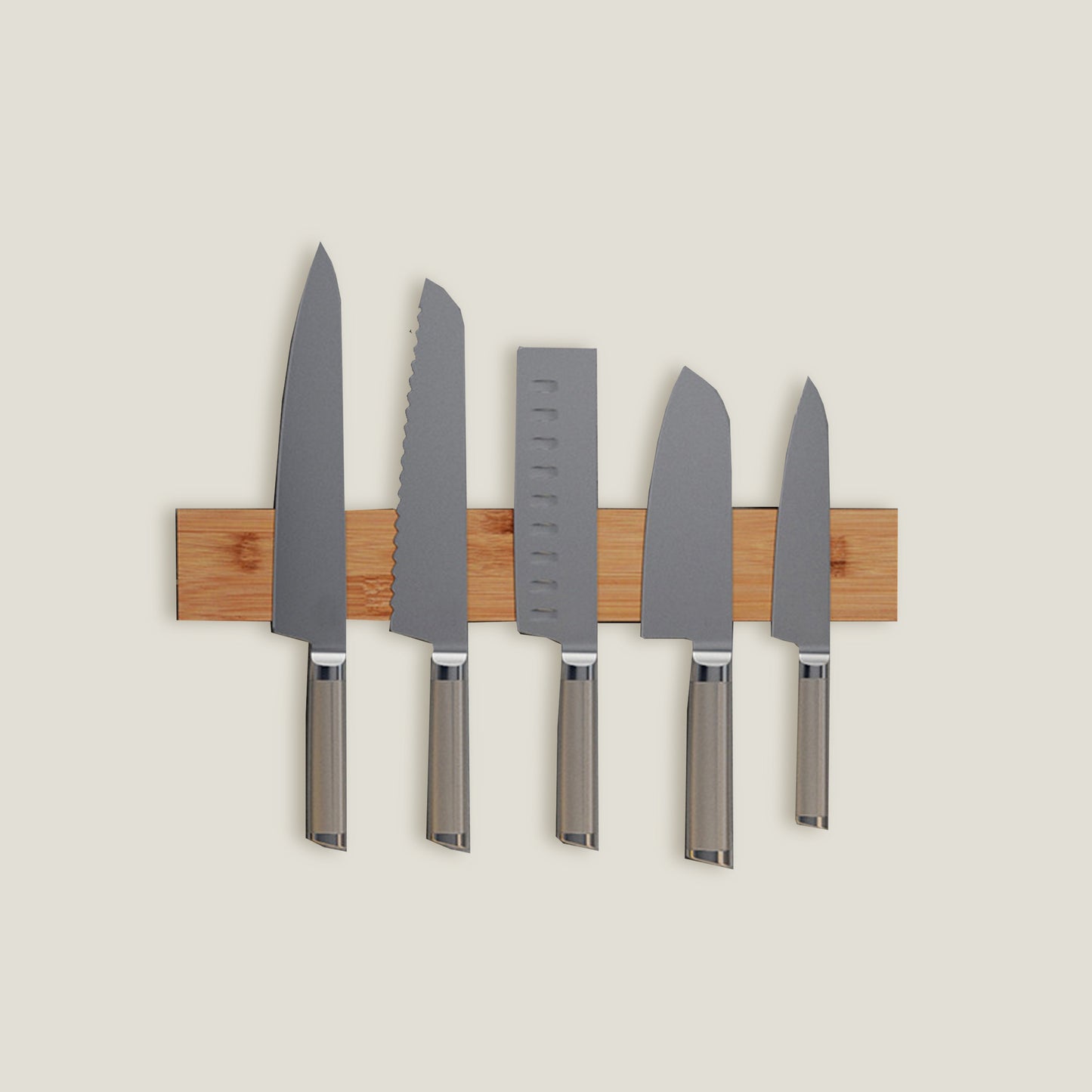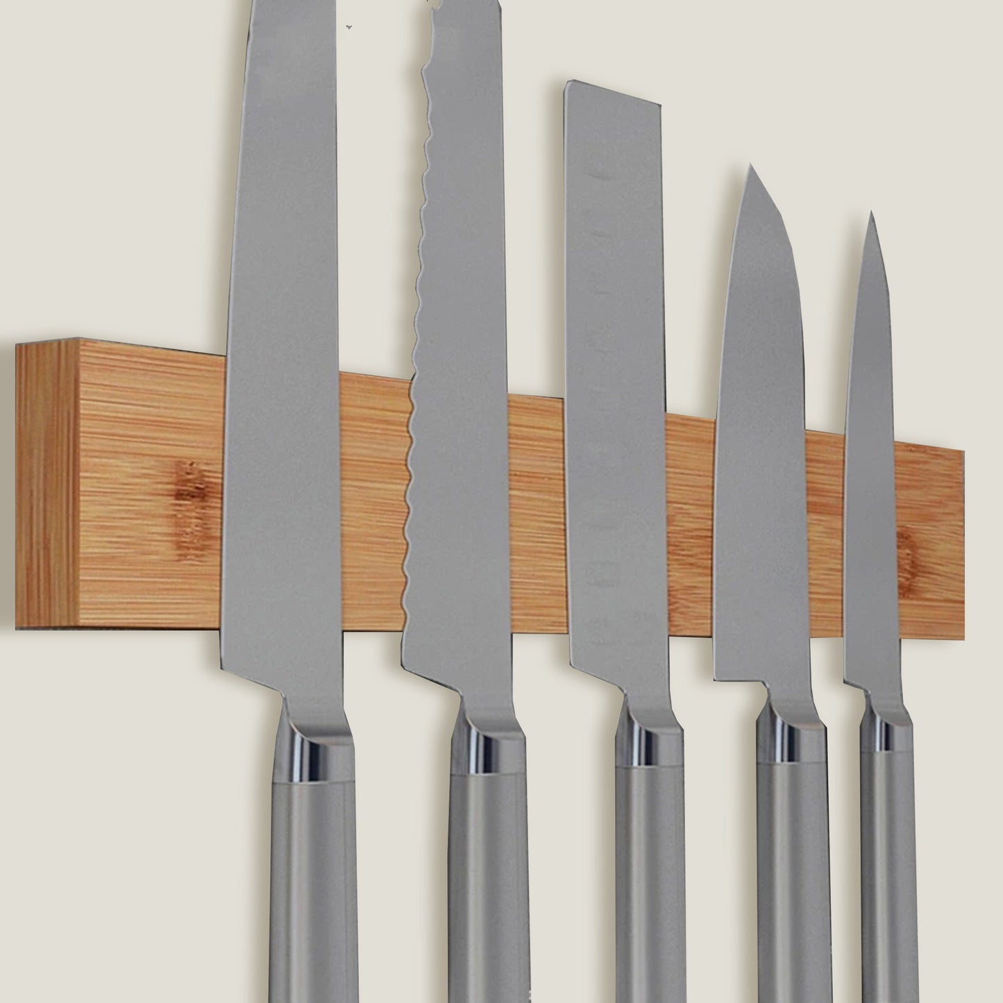 This Wood Kitchen Knife Holder is perfect for keeping your knives organized! Its wooden construction and wall-mounting feature keep your kitchen space neat and clutter-free. The strong magnets ensure that your knives stay securely in place, making them easy to access when you need them.