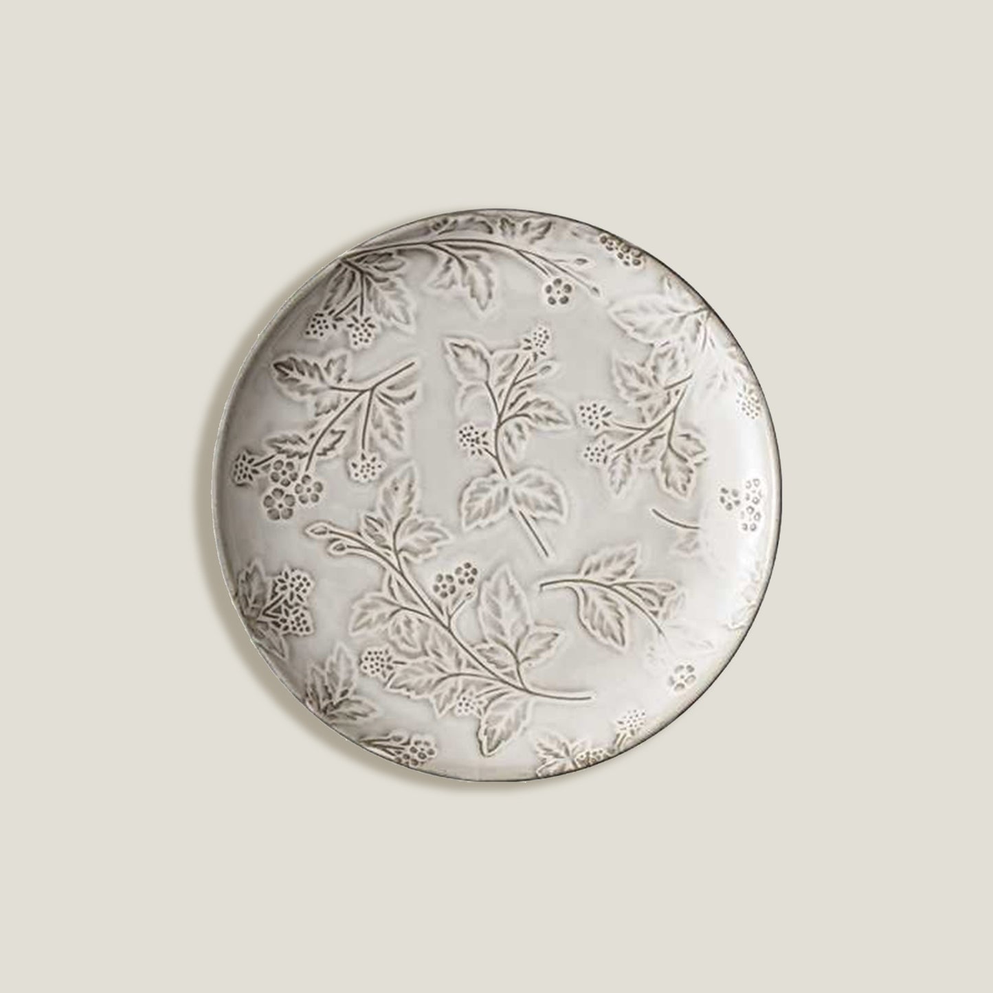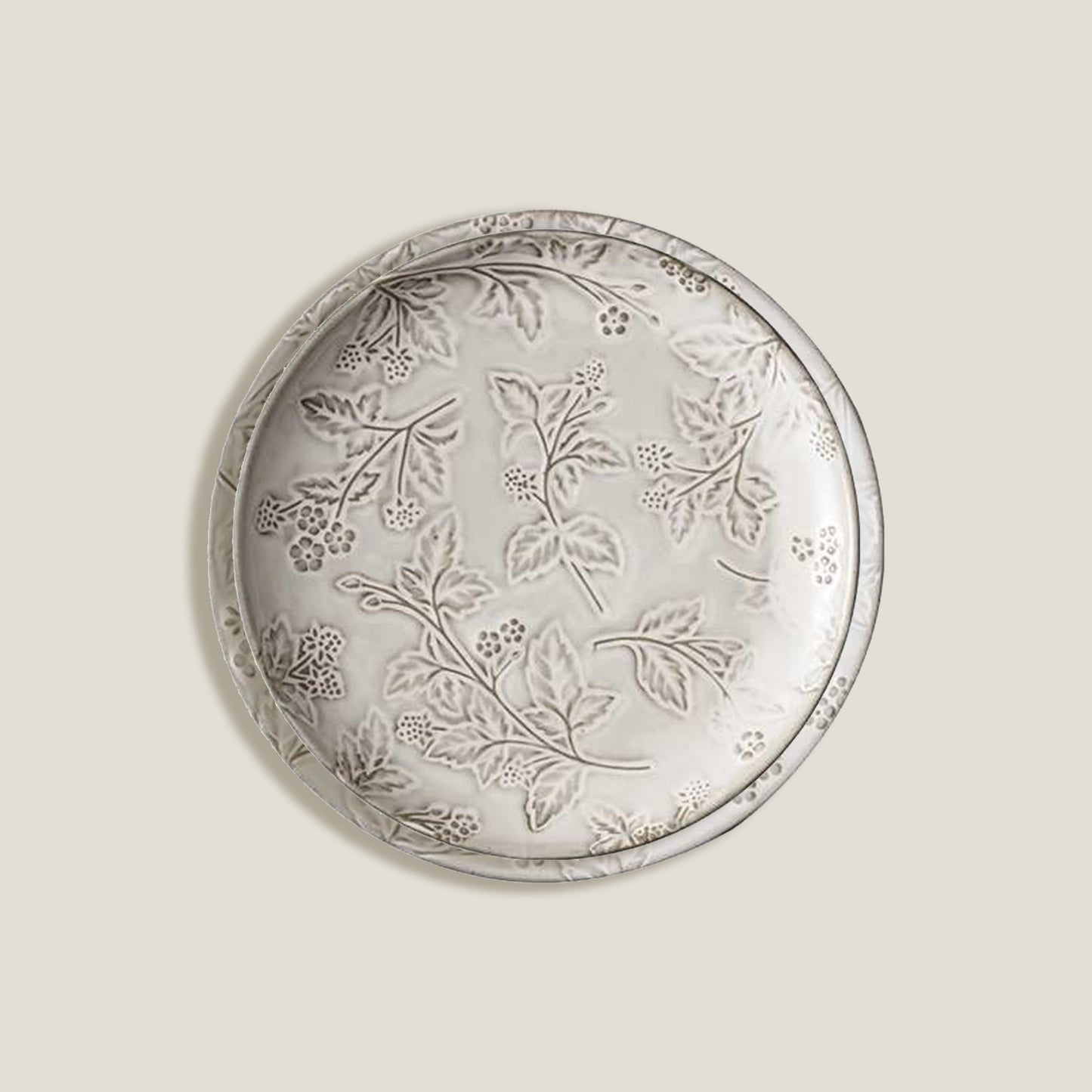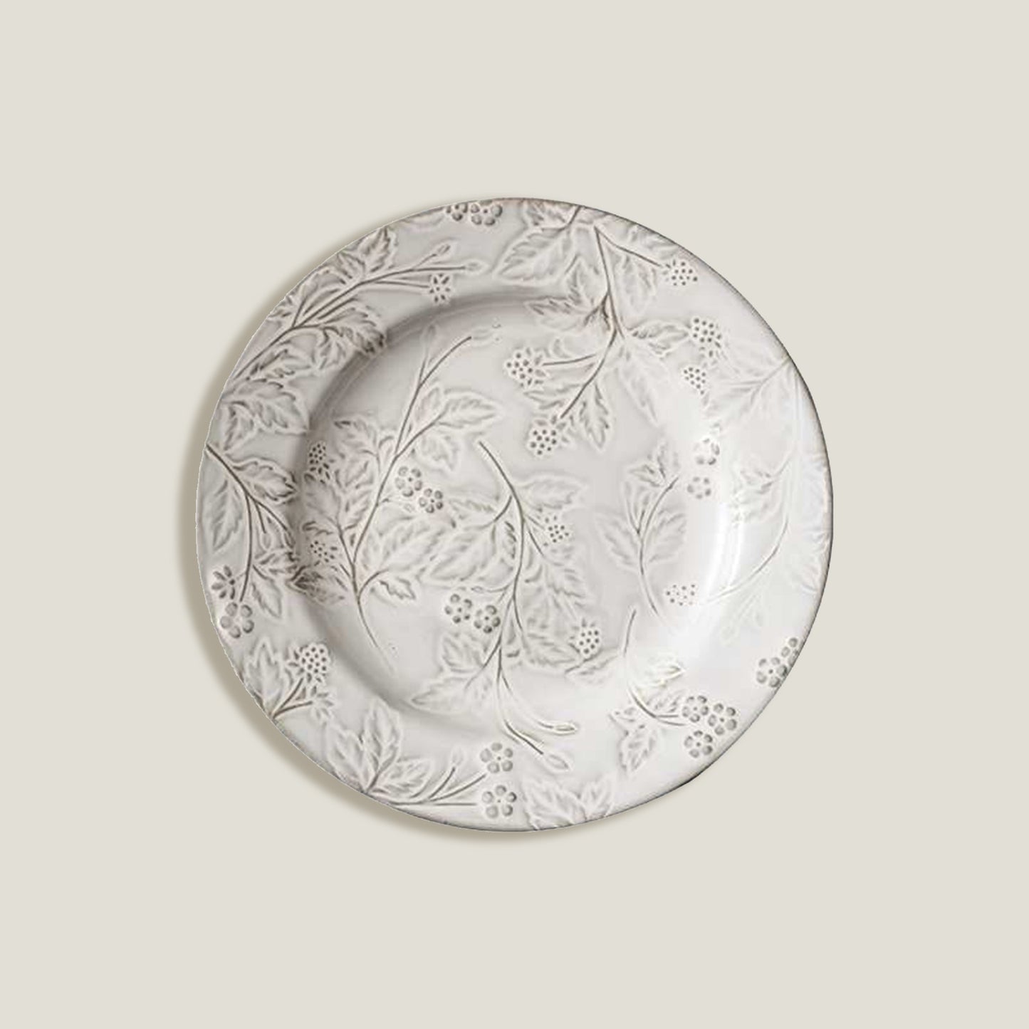 Os pratos de jantar com relevo creme têm um design lindo, um dos favoritos da nossa loja.