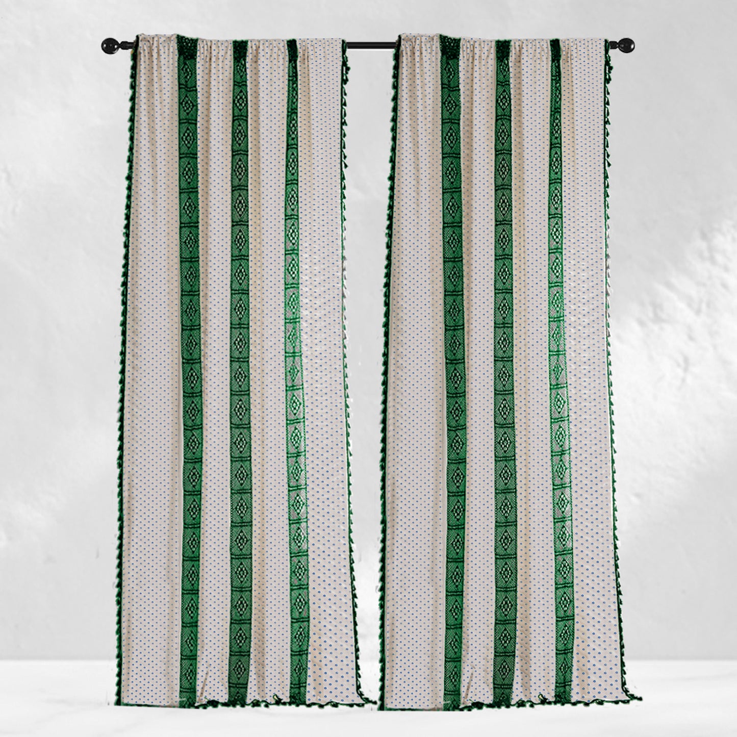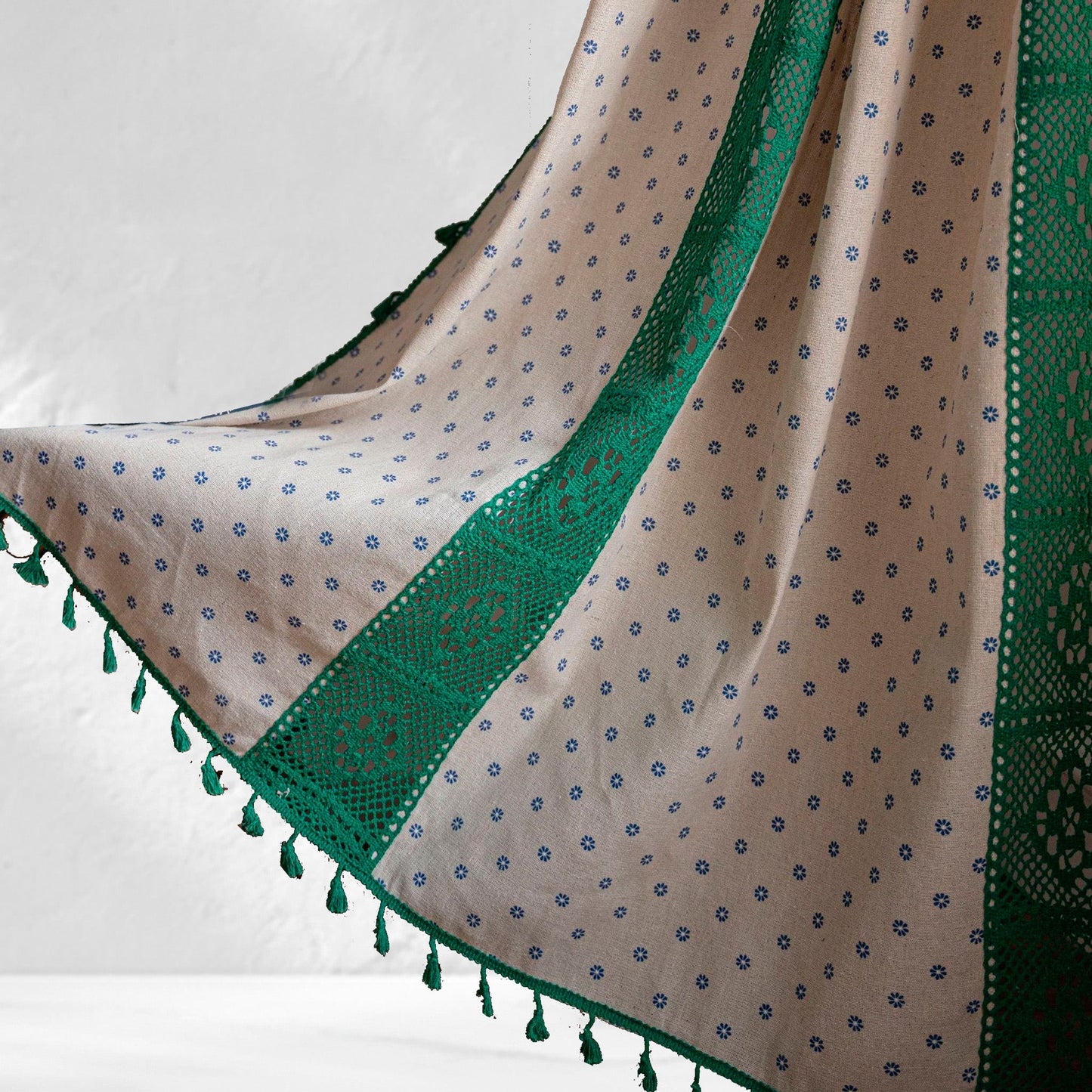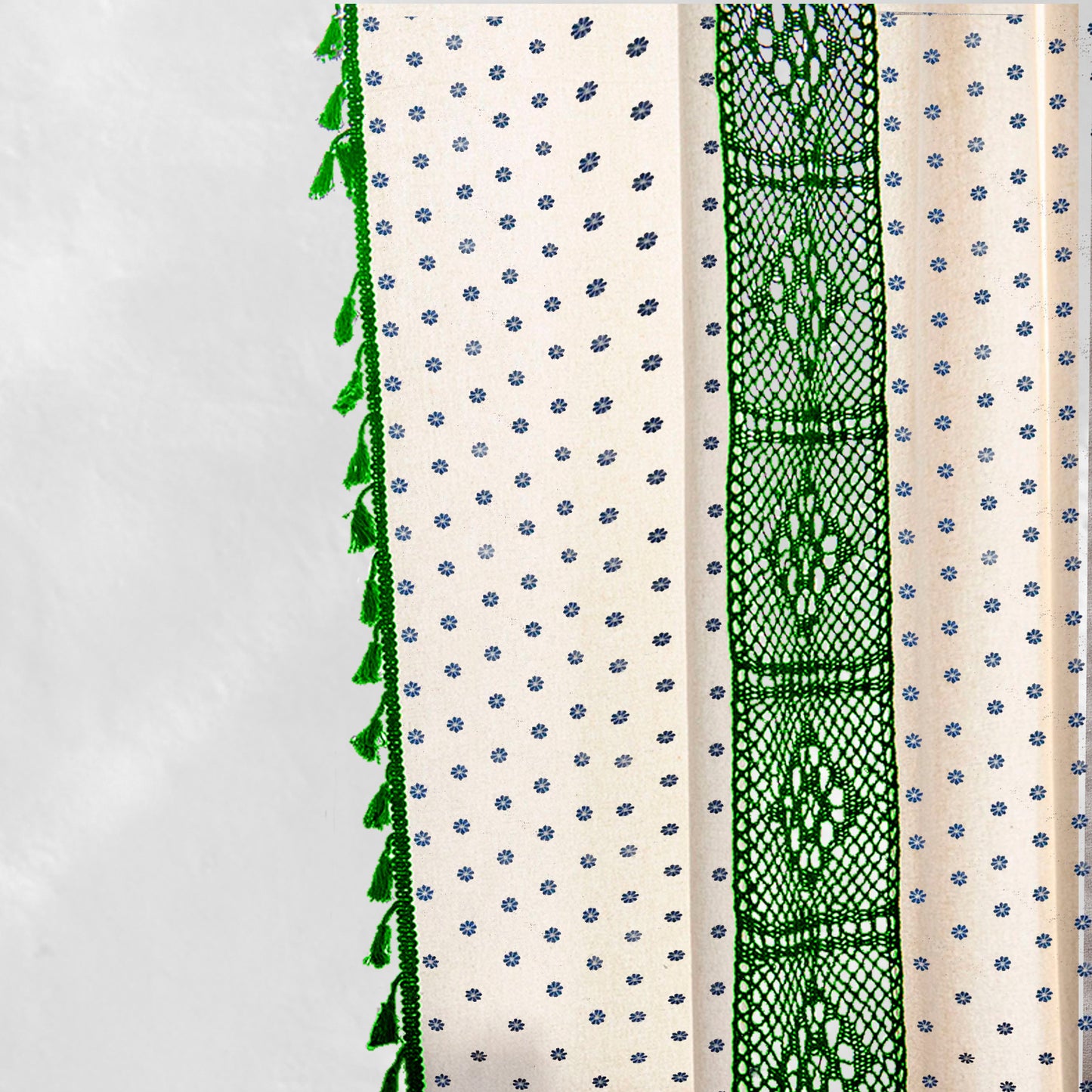 Embeleze suas janelas com o requinte refinado das nossas Cortinas de Crochê Floral Verde. Feitas de linho de algodão leve e arejado, estas cortinas ostentam um intrincado padrão de crochê decorado com borlas, trazendo um toque opulento a qualquer ambiente.
