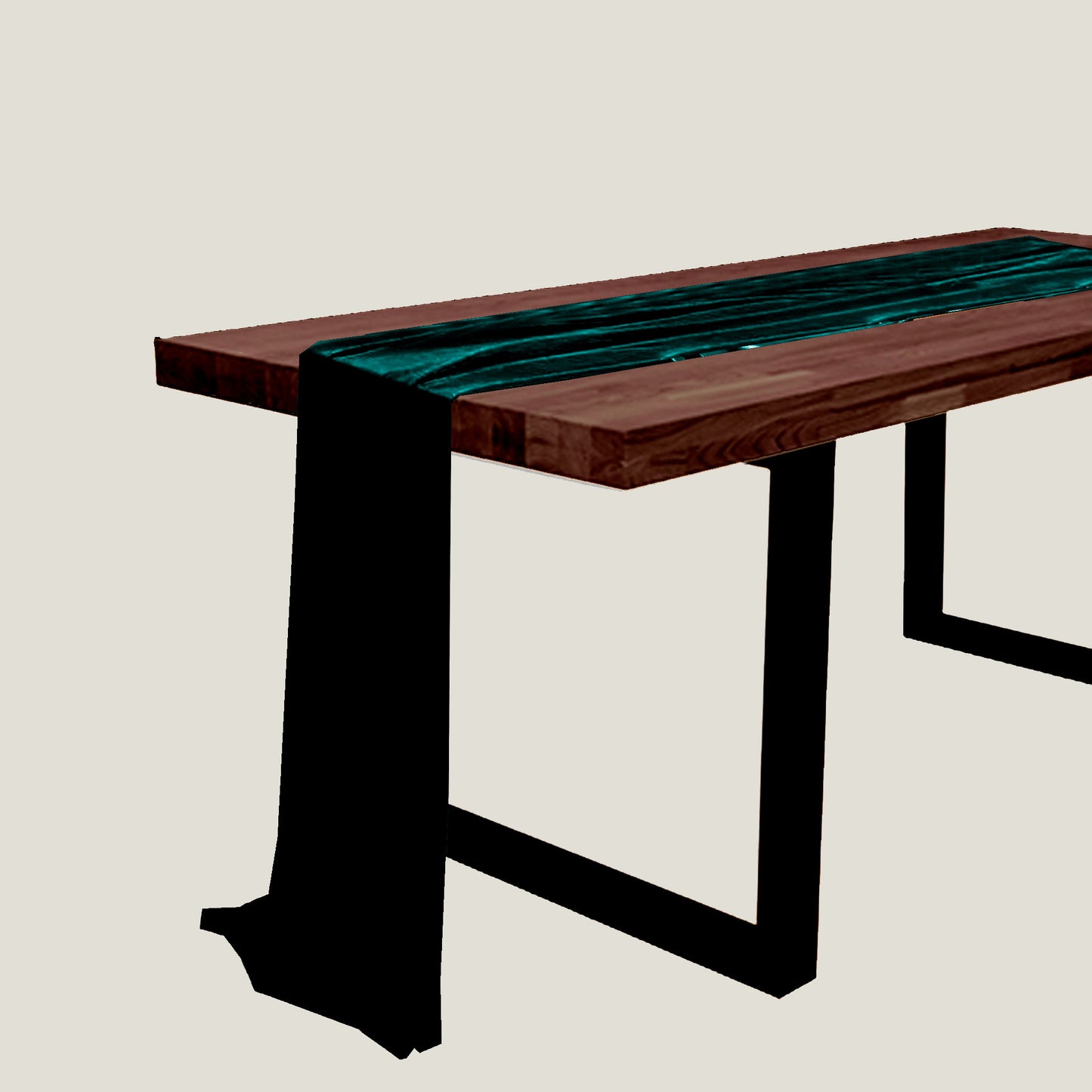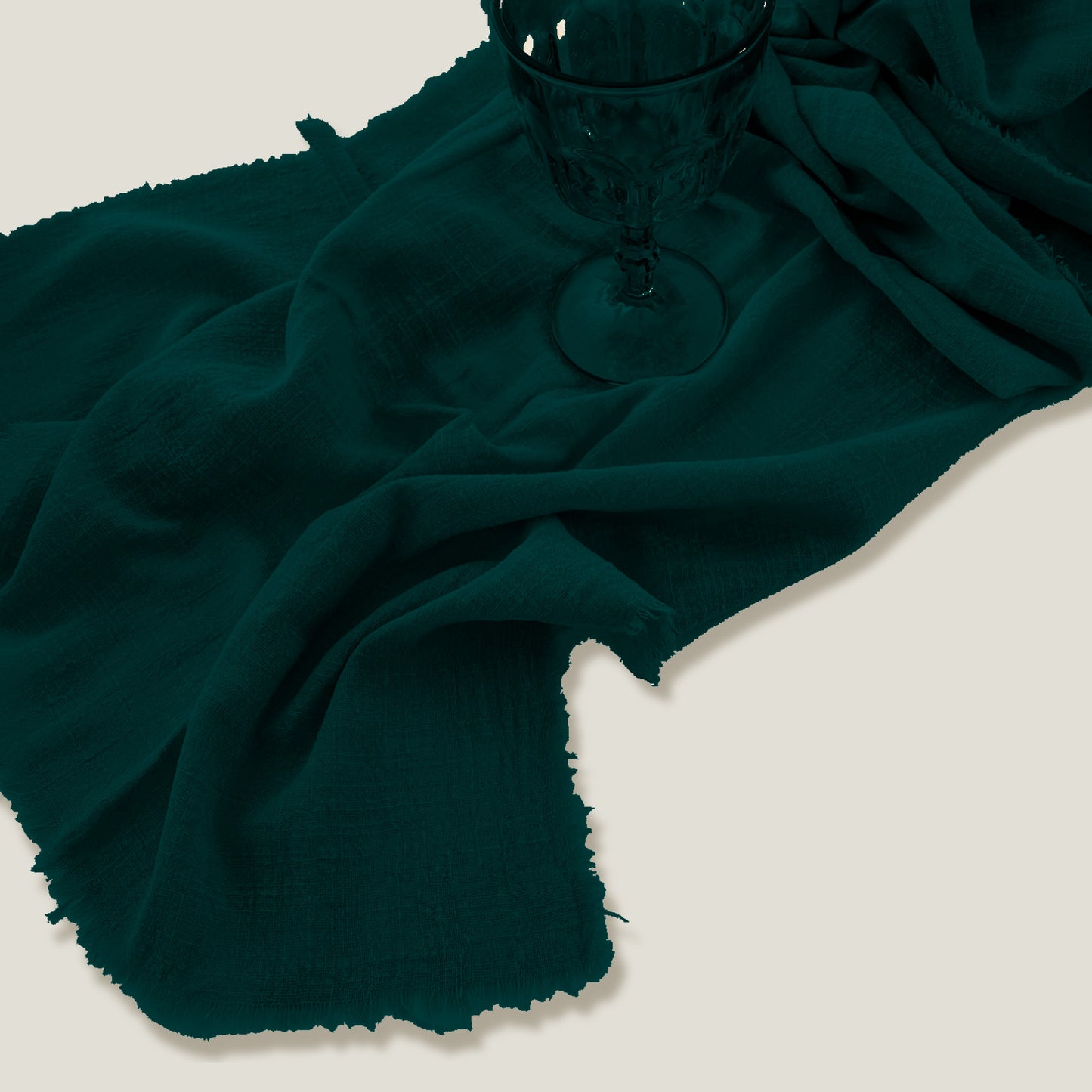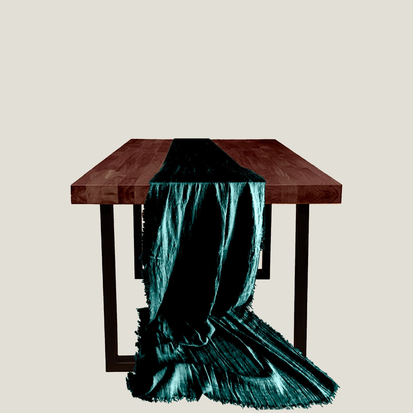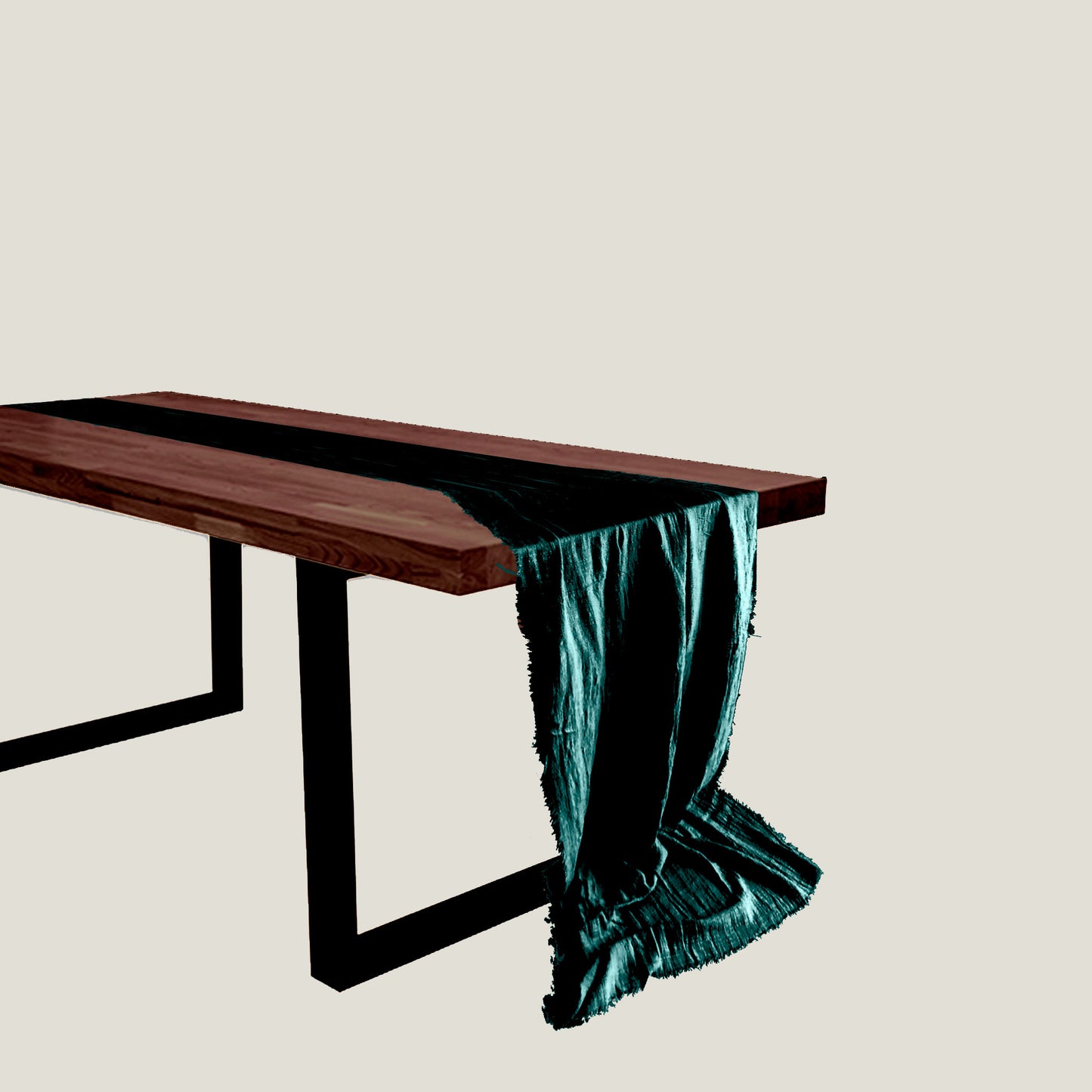 O caminho de mesa tem uma textura macia, leve e semi transparente.