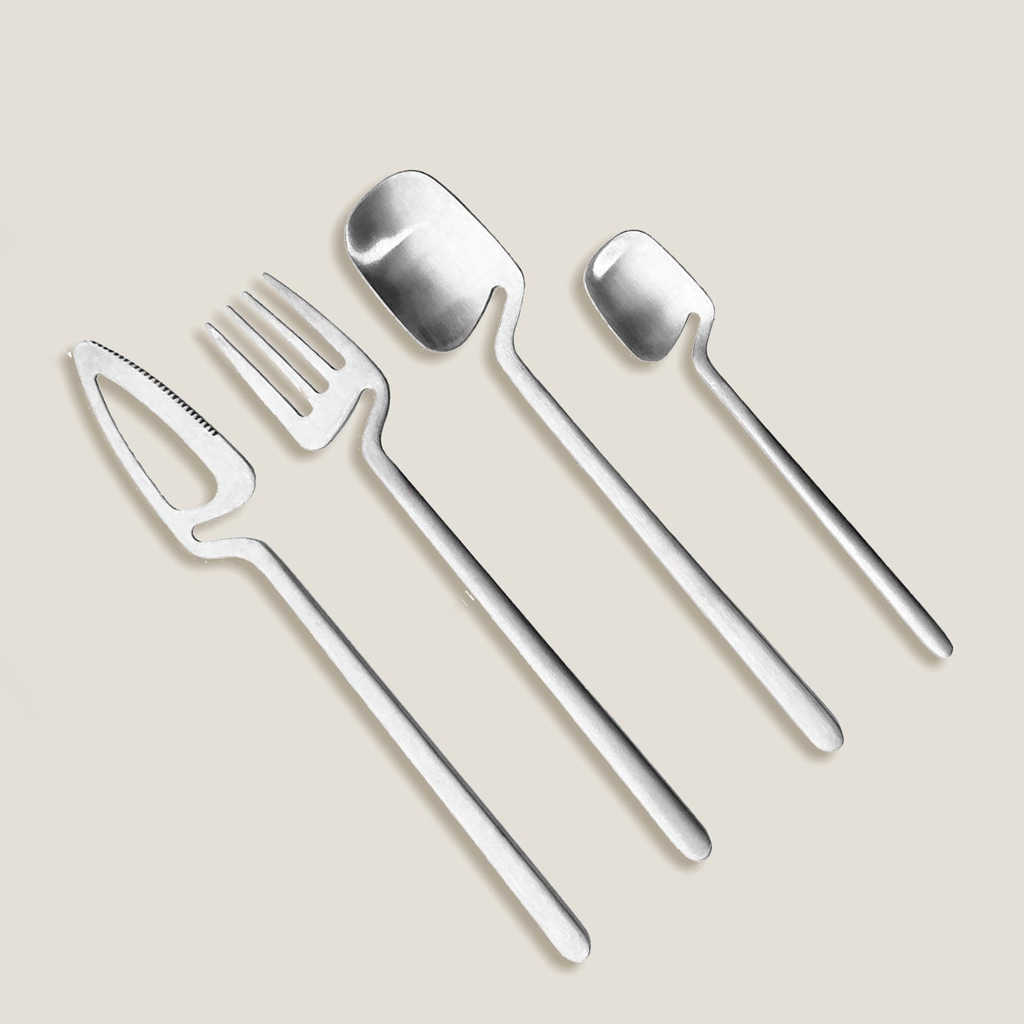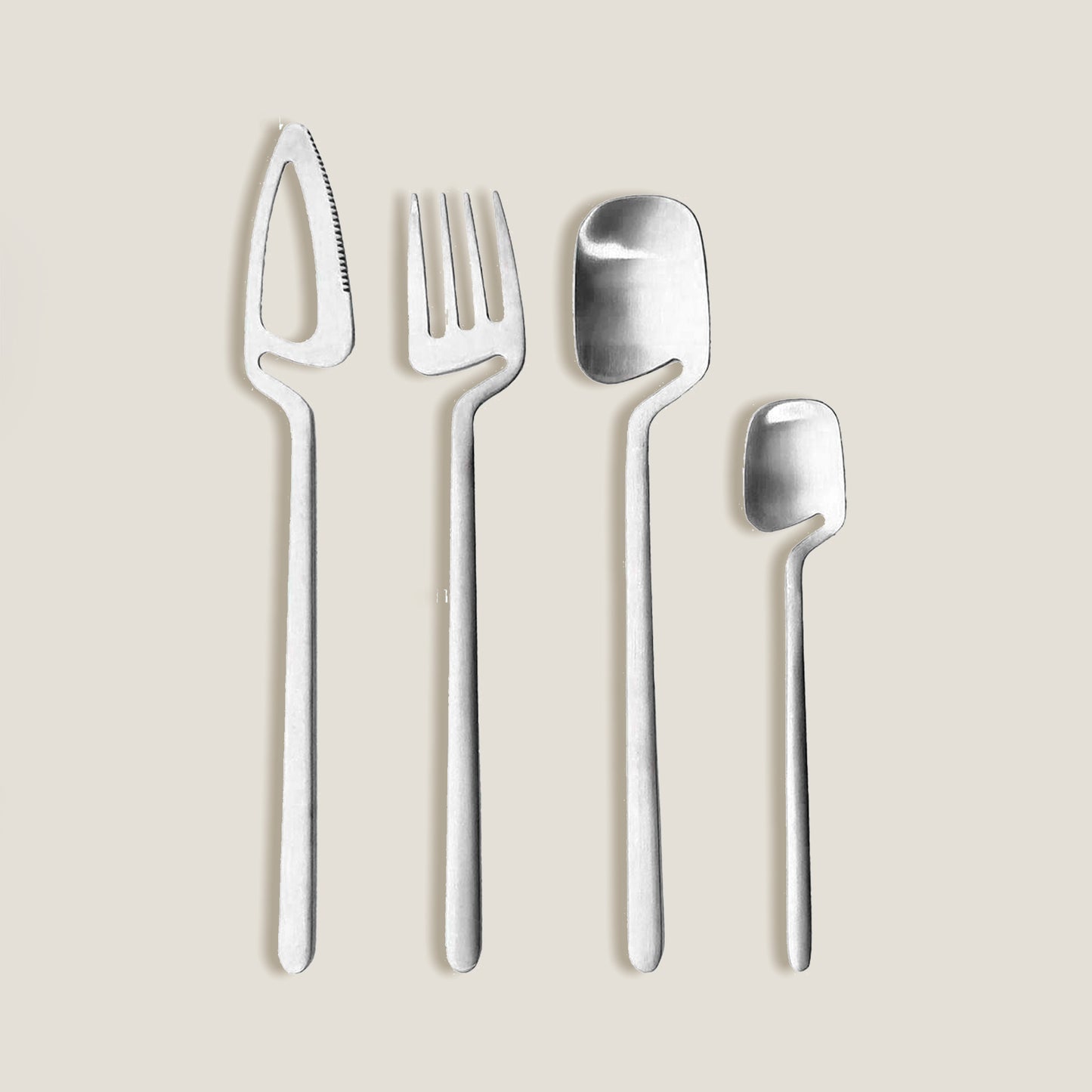 Conjunto de 4 peças = Conjunto para 1 pessoa = 1 garfo + 1 faca + 1 colher + 1 colher de chá.