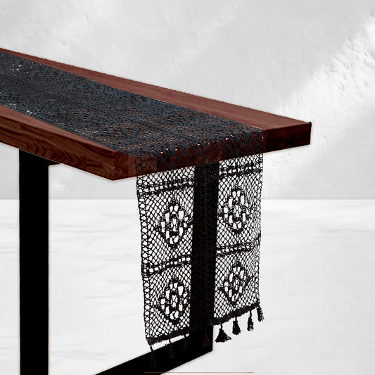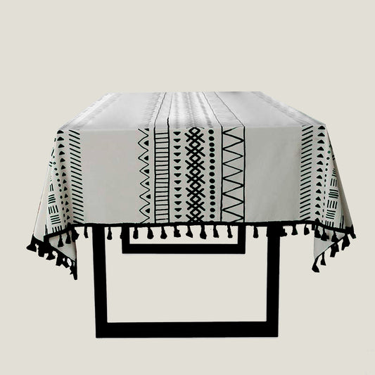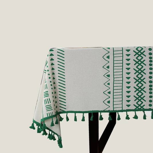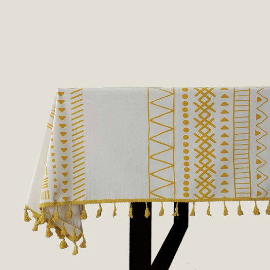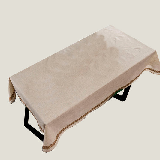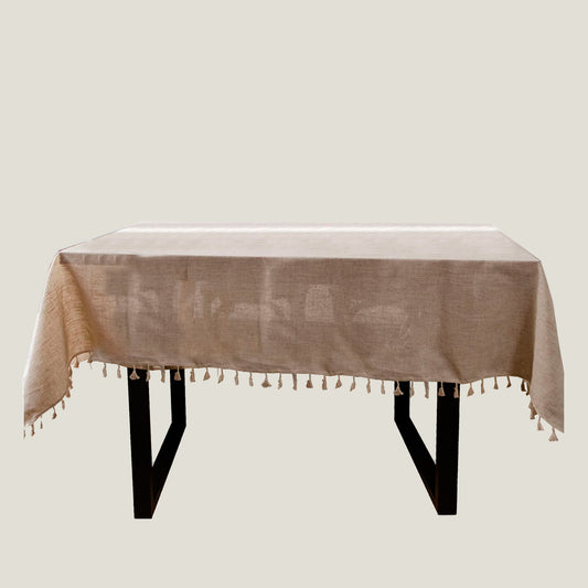 TükendiKahve Keten Püsküllü Masa Örtüsü
